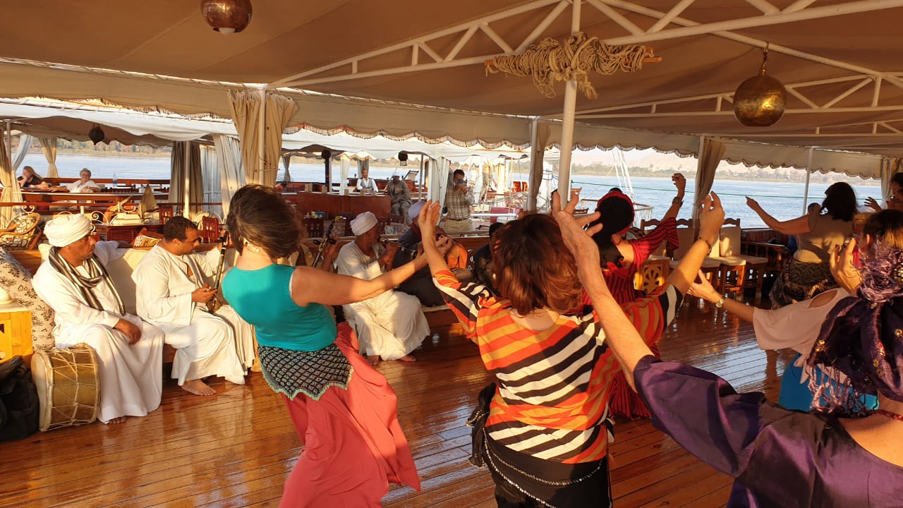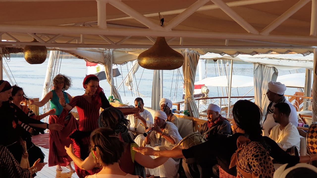 Durant ces 6 jours à Assouan, nous serons baignées une vingtaine d’heures dans le feu de la danse et les musiques baladi, sha’abi, ghawazee et nubiennes accompagnées par de magnifiques troupes de musiciens dont les illustres « Musiciens du Nil » de Louxor.